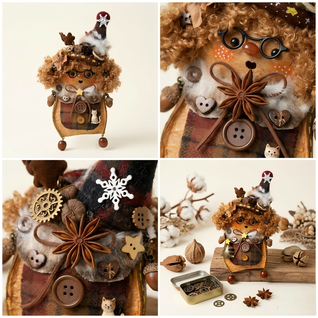 Nature-Sculpted Base: Her body is formed from a unique Speckled botanical seed pod, meaning no two Kringles in the world share the same shape.